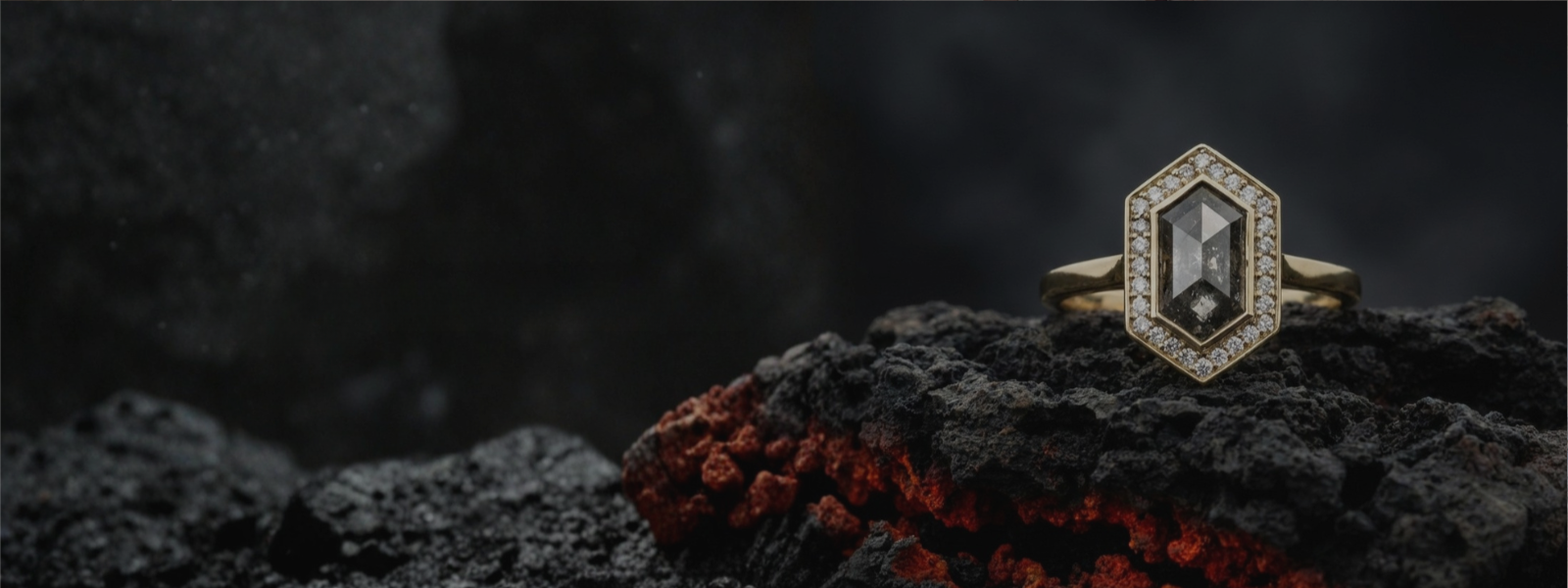 This is The Kanani Ring , a bold piece carefully hand carved from wax , then cast into Sterling silver. A baby blue trilliant Topaz sits in the center, gripped by pointed "Dragon Claws" . The surface is etched with intentional blackened erosion , giving the ring a broken-in feel from the start. Clean in parts, rough in others , a balance between structure and decay